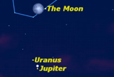 Юпитер ще се вижда като много ярка звезда в съзвездето Риби, а Уран ще се вижда точно над Юпитер като зеленикава звезда. Положението на планетите е в източната част на хоризонта и много лесно може да се види, защото днес Луната ще бъде точно над Юпитер.
